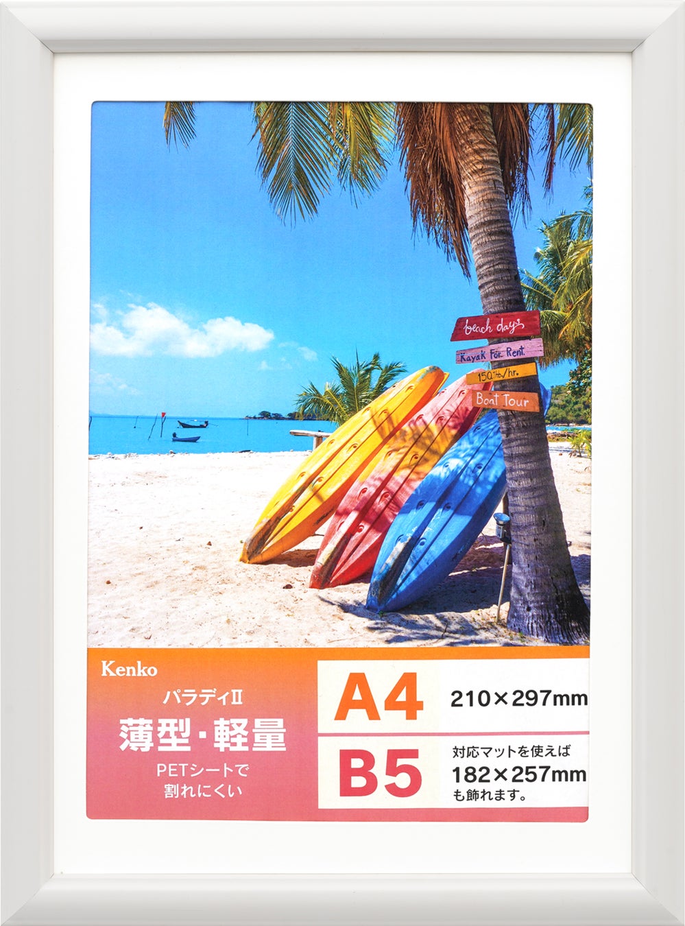 ケンコー パラディIIは、一般的なコピー用紙(OA用紙)サイズが、そのままダイレクトに入れられるフレーム。