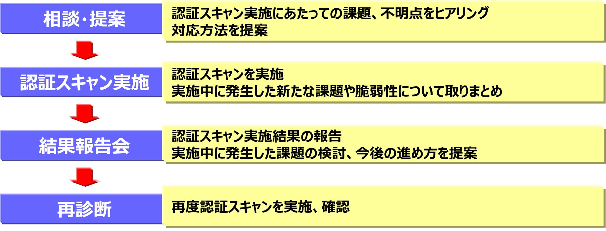 PCI DSS準拠コンサルティングや脆弱性検査など、PCI DSS準拠対応の豊富な実績を持つ専門の診断員が認証スキャンを実施。お客様の環境状況をヒアリングし、最適な認証スキャン方法を提案します。