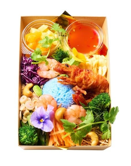 今回の受賞を記念して、期間限定特別メニュー「カオヤム パクタイ」が登場。目にも華やかなこのお料理は、春の季節にぴったり。さらに、自宅で気軽に本格タイ料理が楽しめると評判の、地下1階惣菜売場の「チェディルアン」でも、「カオヤム パクタイ」のお弁当を販売します。レストランでも、ご自宅でもお楽しみいただけます。