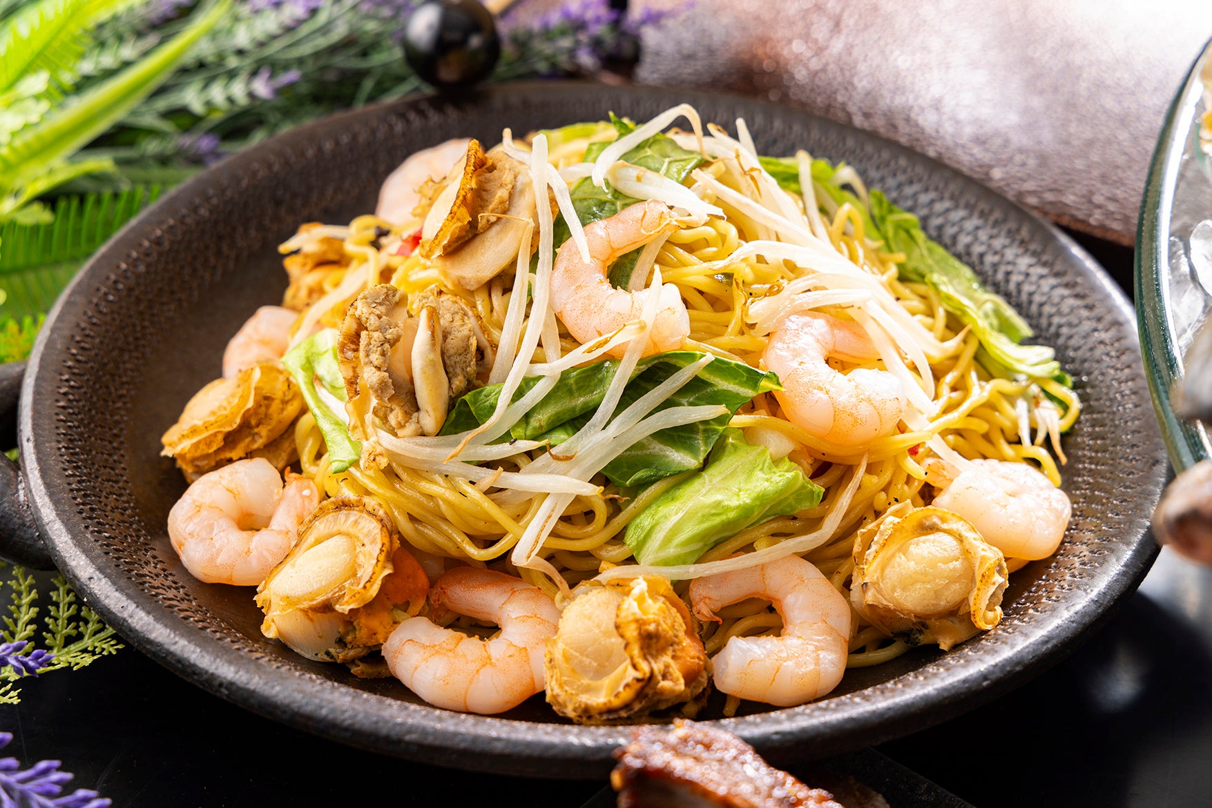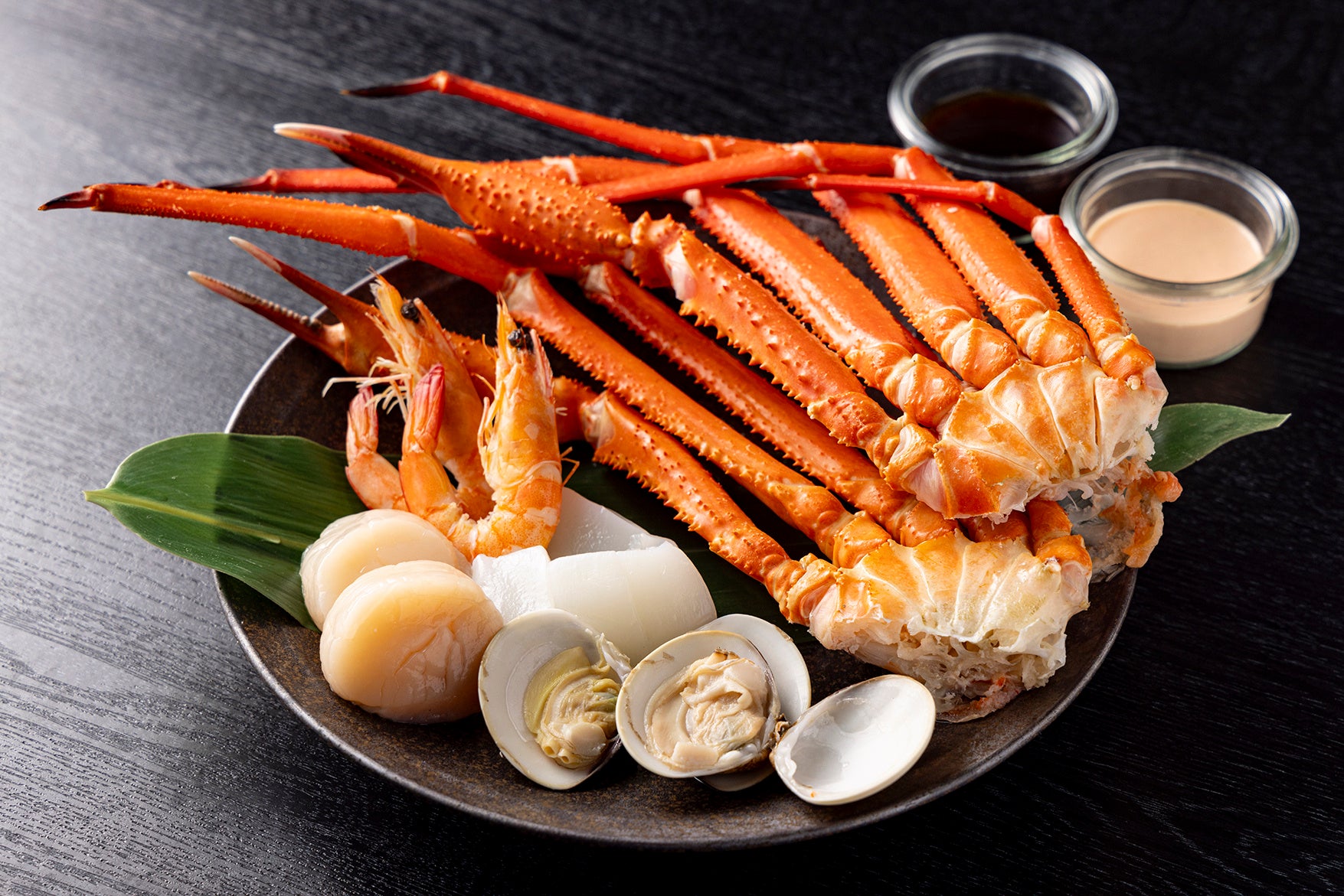 ランチタイムは白と赤のコントラストが美しいいちごの食べ比べを、ディナータイムには紅ズワイガニ、ホタテ、ハマグリ、有頭海老のボイルが盛りつけられたシーフードプレートをテーブルまでお持ちいたします。