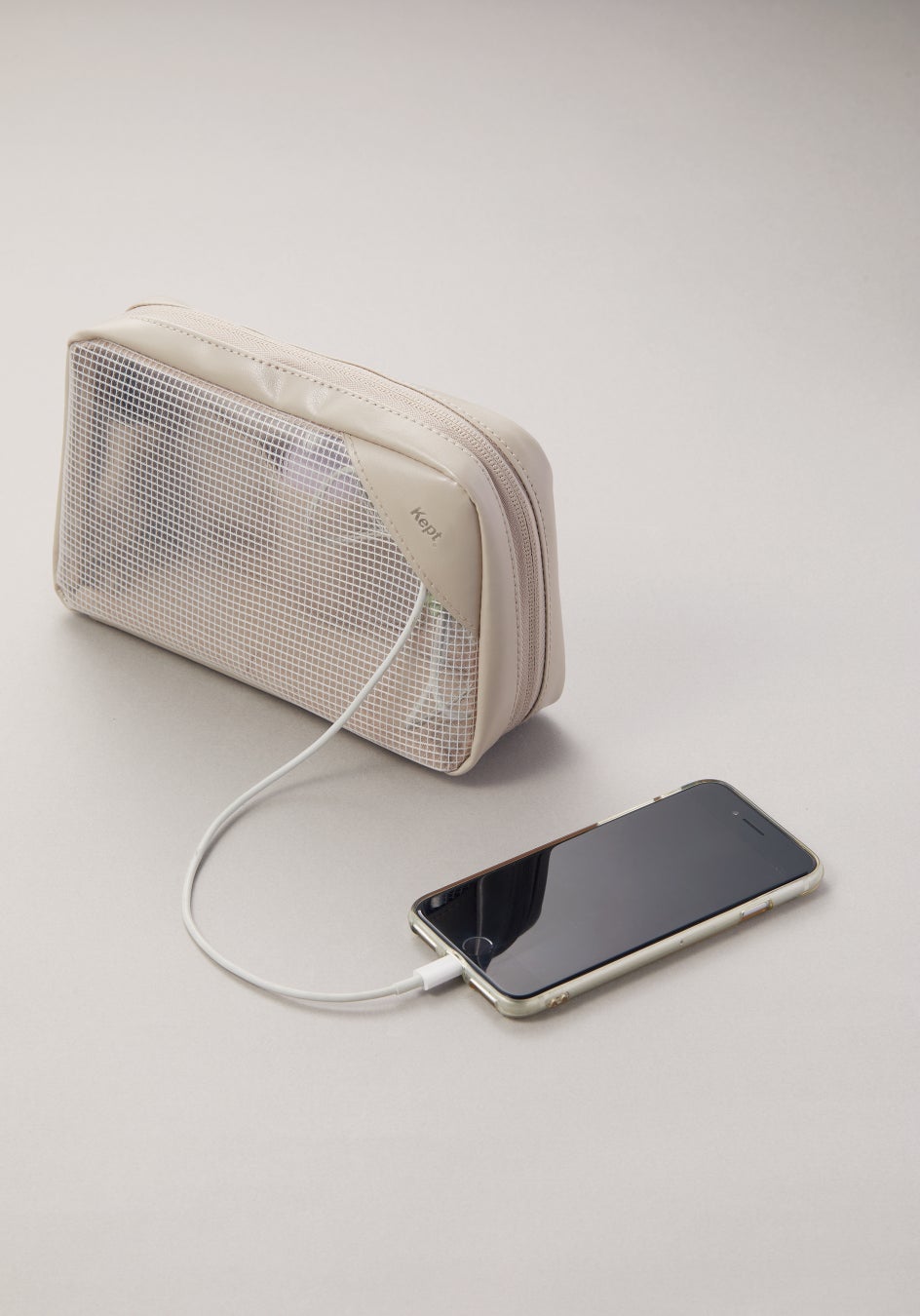 人気のKeptからデスク周りにもなじみやすいアースカラーの新シリーズが登場。収納したままスマートフォンなどを充電できる通し穴、伸縮性のあるポケットが特長。