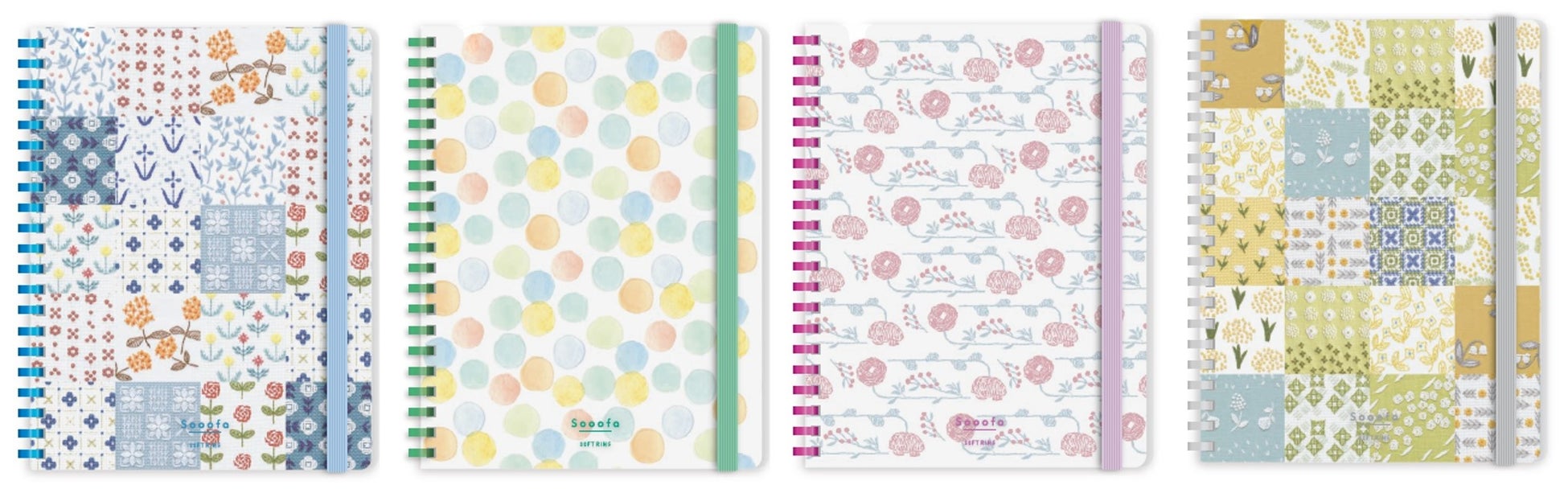 手が痛くなりにくいソフトリングノートシリーズ「Sooofa」。四季の花などをテーマに原画・図案を作成する文具メーカー「星燈社」の花柄イラストを用いたロフト限定デザイン。※9月入荷予定