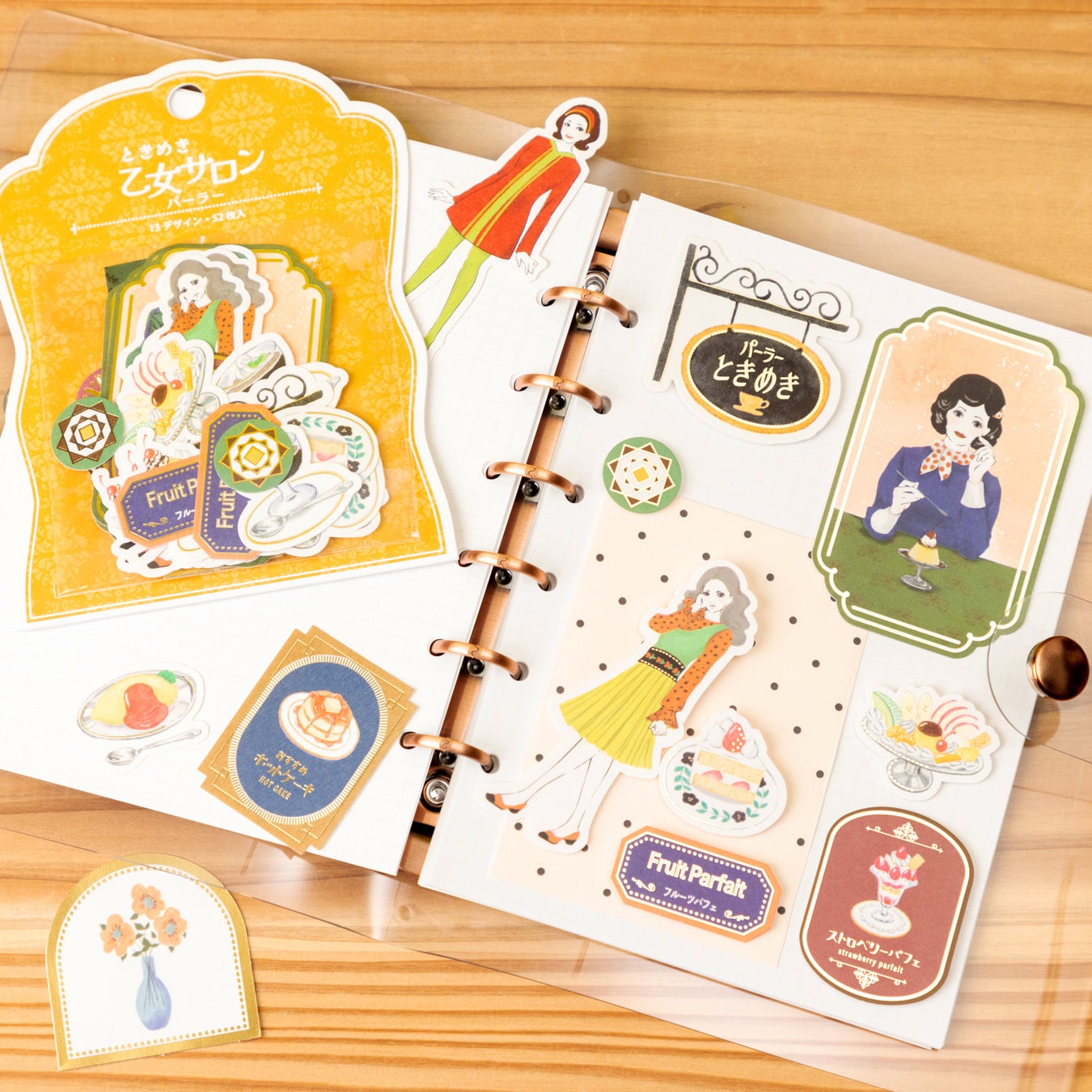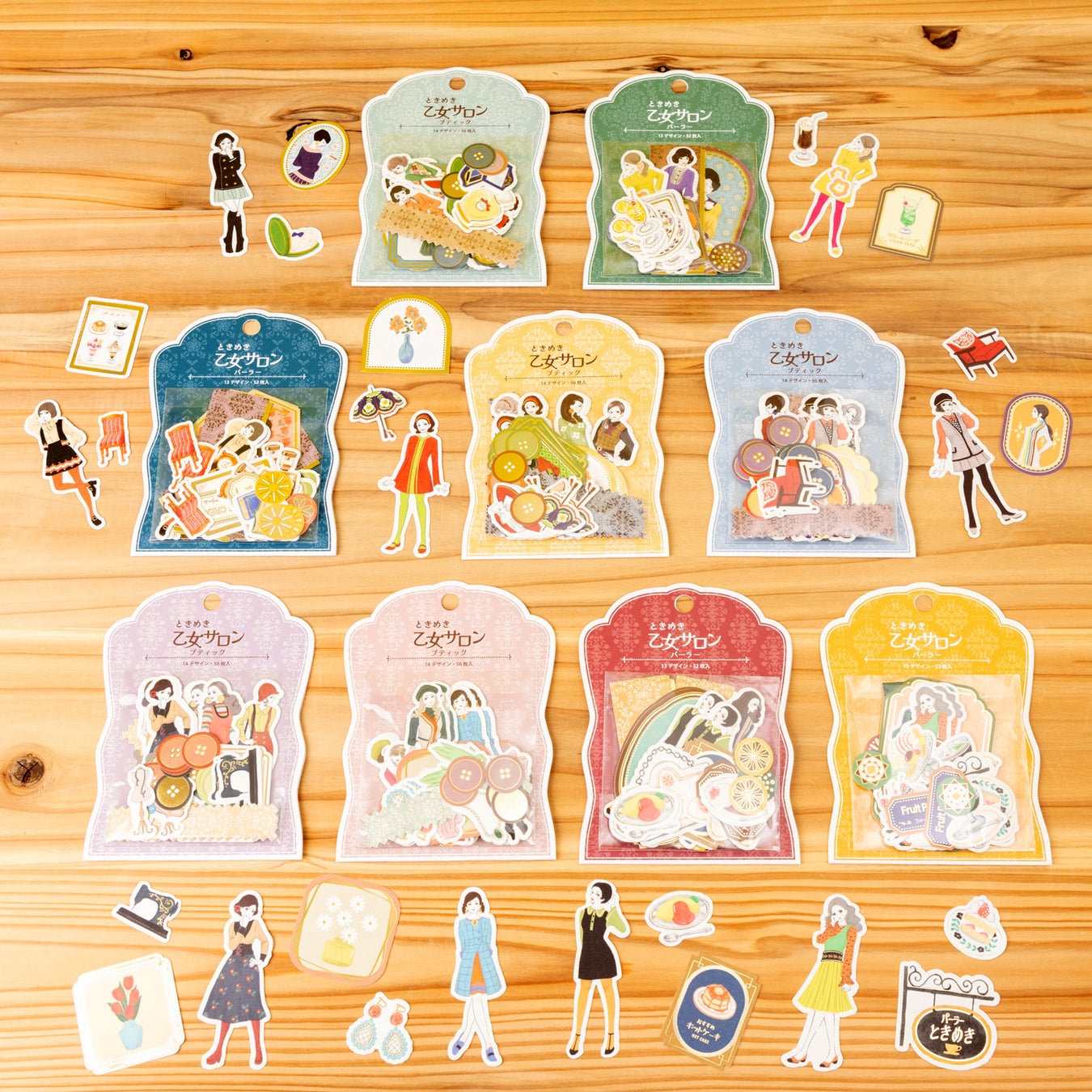 レトロなファッションとアイテムがモチーフの手帳やノートに貼って楽しめるデコレーションシール。「テキスタイル」や「インテリア」など全9種類。それぞれ10柄、各4枚の40枚入り。