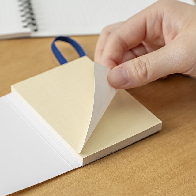カラーバンドが付いた手のひらサイズの付箋。鞄の中でもめくれにくく、持ち運びにも便利。全6色。
