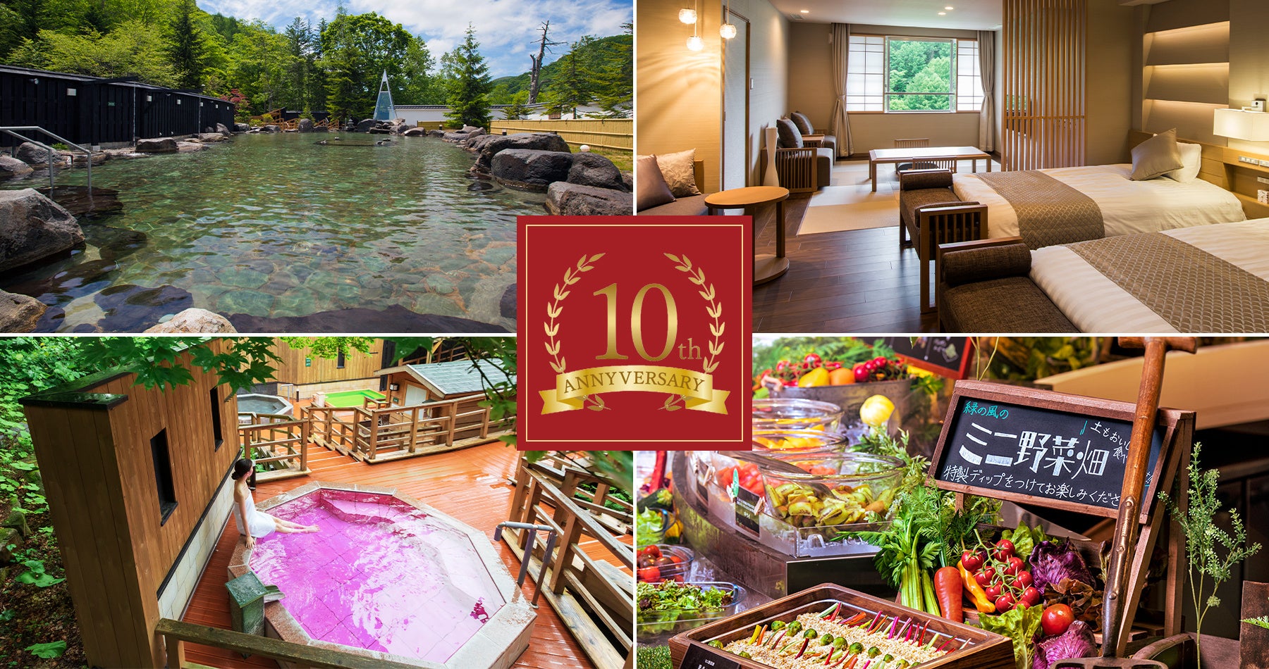 野口観光マネジメント株式会社(本社:北海道登別市、代表取締役社長:野口和秀)が運営する「緑の風リゾートきたゆざわ(北海道伊達市大滝区北湯沢温泉町300-2/副支配人:相原優也)」では、2025年に10周年を迎える節目に、大変お得な宿泊プランを販売開始いたしました。