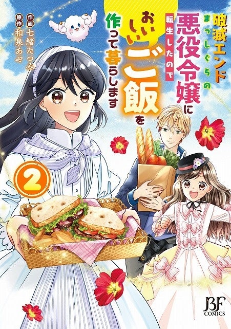 【あらすじ】神様の手違いで乙女ゲームの“悪役令嬢” アーシェリアスに生まれ変わった莉亜は、破滅エンド回避のために剣士ザックとモフモフの妖精と共に旅に出る。さらにそこに新たな仲間ノアが加わり、幻の食材を求めて「祈りの洞窟」へ向かうことに。洞窟の奥で魔物に遭遇したアーシェリアスたちは、ファーレンの王立騎士・エヴァンの登場により無事に窮地から逃れる!しかし、エヴァンがザックの護衛だと名乗ったことで、ザックの正体がファーレンの第四王子・アイザックであることが発覚し――!?