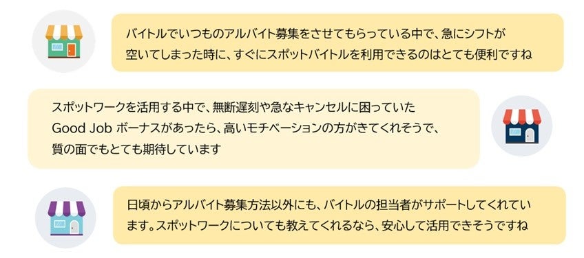 「スポットバイトル」は、「Good Job ボーナス」を搭載した全く新しいスポットのバイトサービスとなり、ワーカー・事業主(企業)双方にWin-Winの関係を実現します。