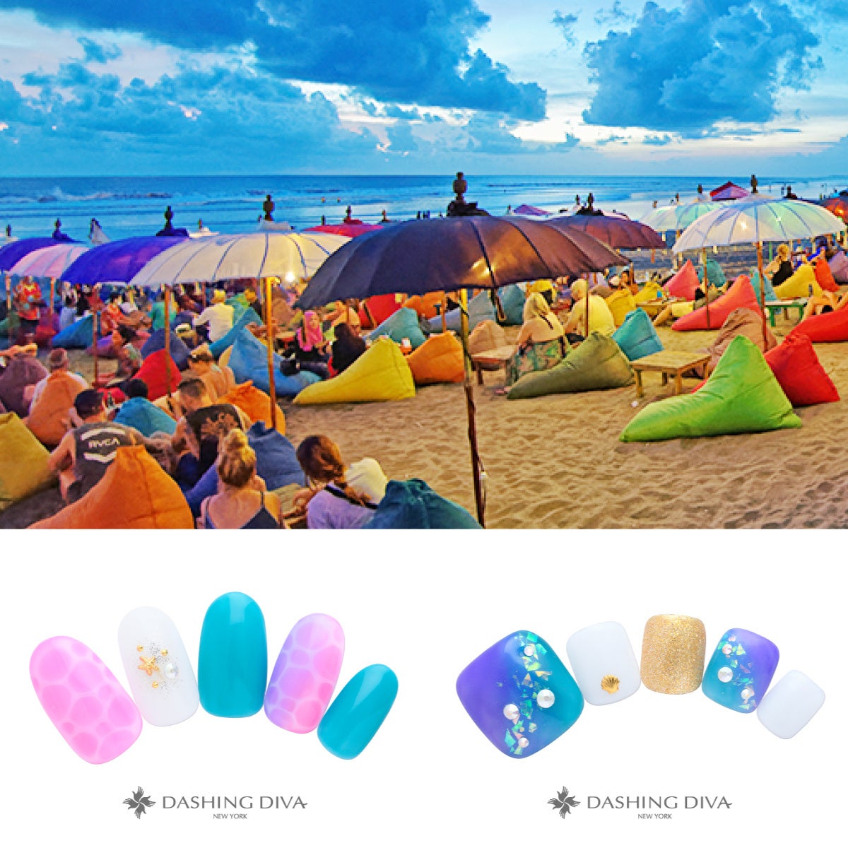 ●7月15日(土)から8月31日(木)までの期間限定で、「旅するネイル」全10種類を展開 ●世界の絶景スポットや人気の旅行先をモチーフにしたデザインを多数用意 ●夏気分を盛り上げるリゾート感あふれるデザインは、ダッシングディバならではの繊細なアートが特長 |