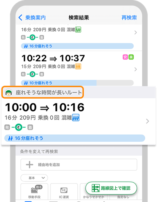 (2)座れるルート追加表示
