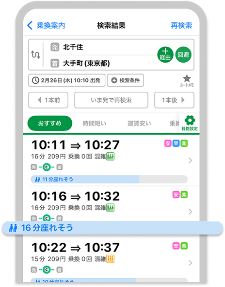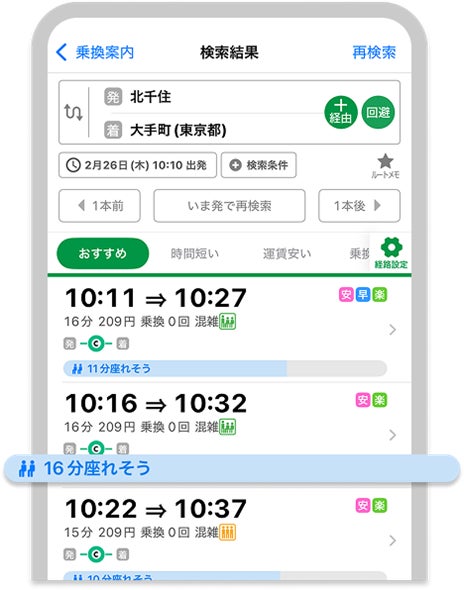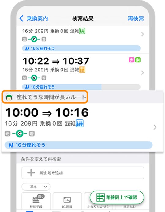 ■『座れるルート検索』機能の詳細については、以下のご案内ページをご確認ください。