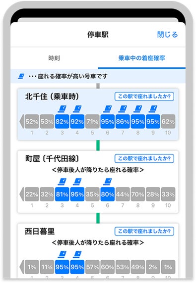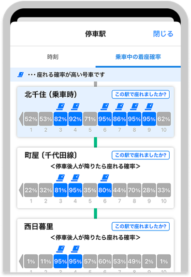 停車駅ごとの着座確率を表示