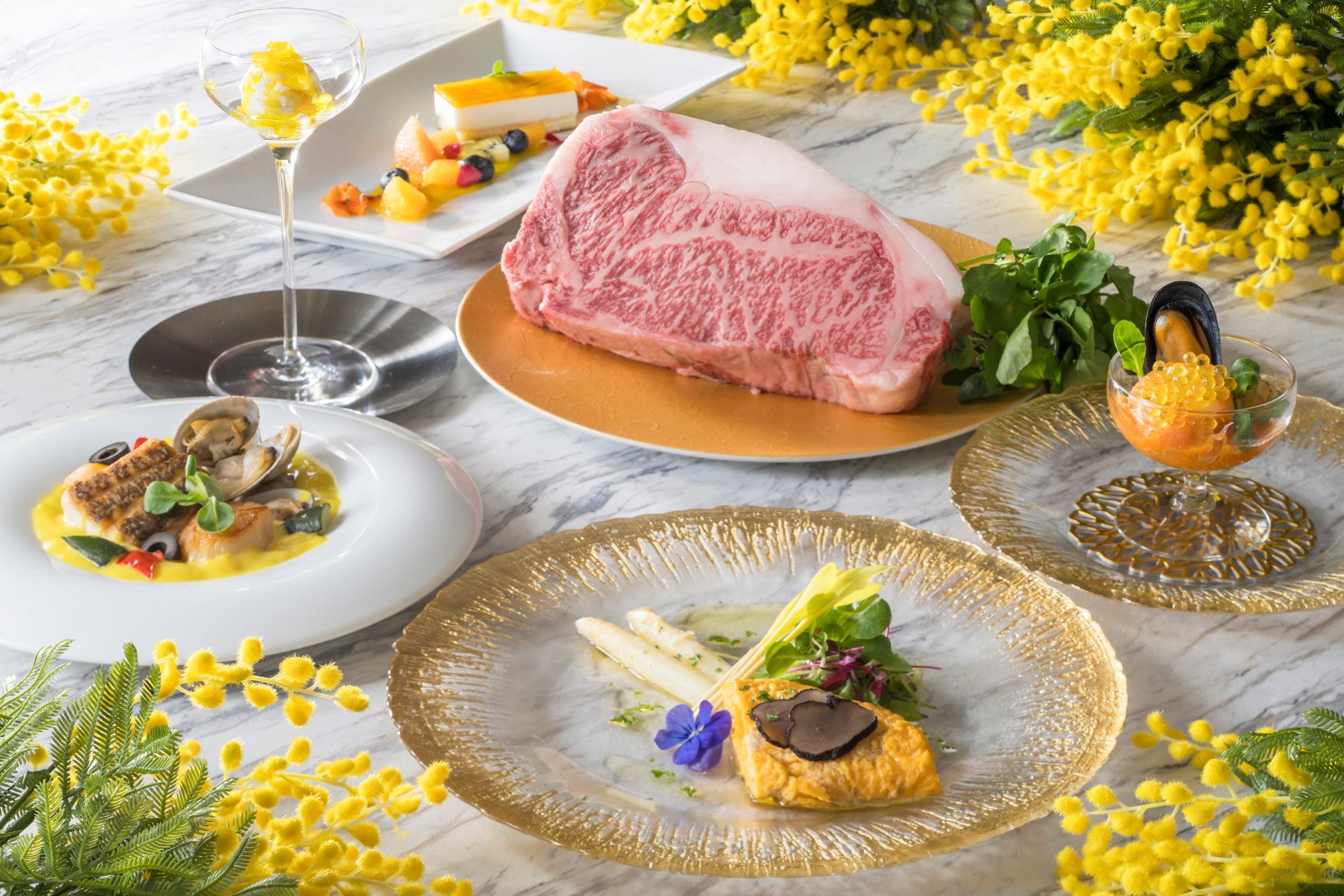 黄金いくらを使ったシーフードカクテルやオムレツを添えたホワイトアスパラガス、サフランクリームソースで味わう海の幸など春の食材と幸せの黄色を取り入れたコースです。