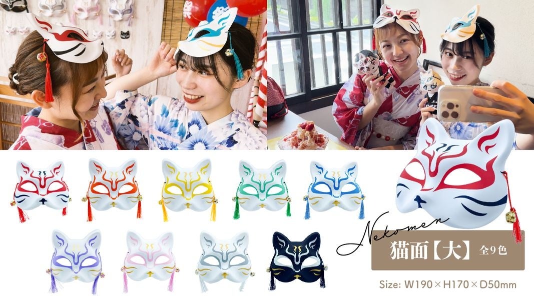 大小あるので、推しのぬいぐるみとおそろいで付けられる推し色の猫面。持ち歩いて一緒に写真を撮ったり、おうちに飾ったり。さりげない推し活にもぴったり。