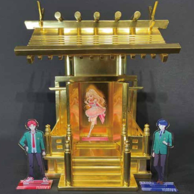推しを神様のごとく崇めるディスプレイとしてぴったりな、全面に本金箔を施した神棚型ディスプレイ。扉を開いて推しのグッズを納められて実用的。神々しい推しを感じられます。