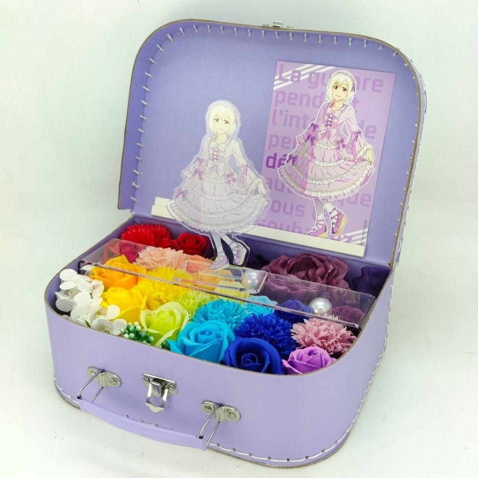 これまでのフラワーギフトとは、一味ちがう!推し色の花に推しのアクリルスタンドやぬいぐるみを飾って贈れる最先端のフラワーギフト。周りと差がつくイチオシ製品。