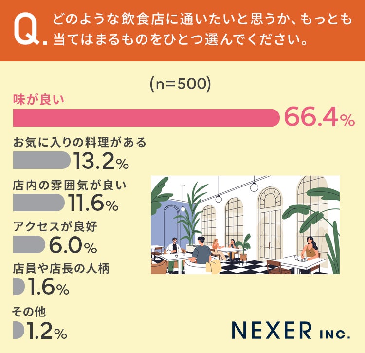 66.4%と半数以上の方が「味の良い」飲食店に通いたいと回答しています。