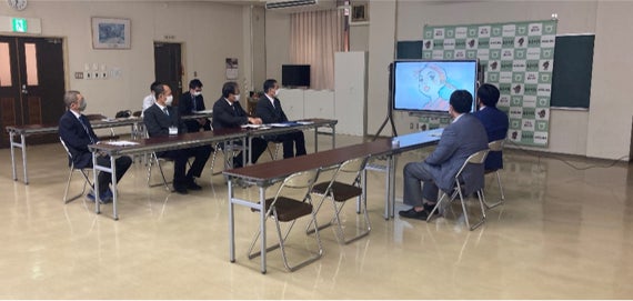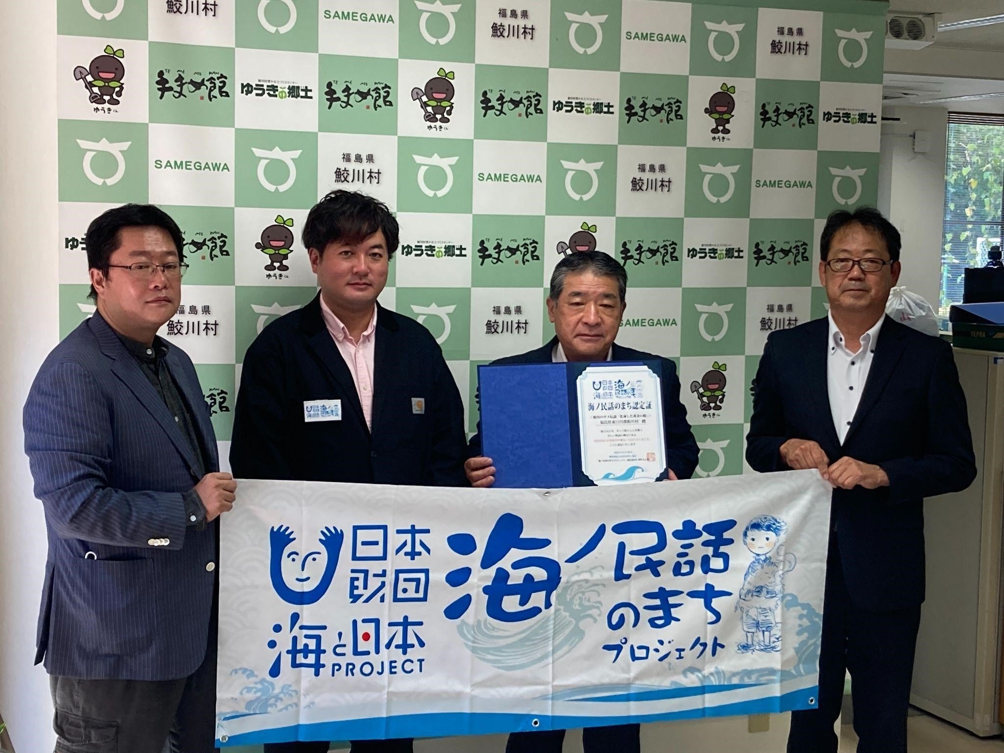 海ノ民話のまち 福島県鮫川村のアニメ「鮫川のサメ伝説『化身した黄金の鮫』」が完成!認定委員長が関根政雄村長を表敬訪問し完成アニメを贈呈