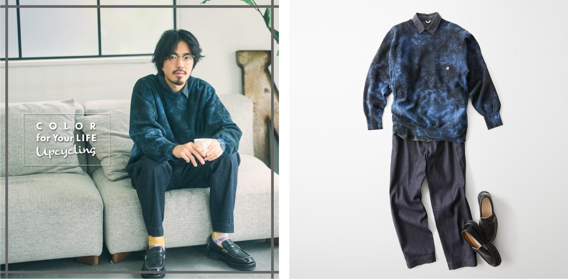 若葉竜也さんが、10年前に古着として購入した大切なスウェット2着をタイダイ染め、あえてムラを作りながら、アップサイクルしました。「染め直し」されたアイテムと再会する様子、O0uのサステナブルウエアを身にまとう様子、ここでしか読めないスペシャルインタビューなどをWEBサイトやSNSで発信いたします。