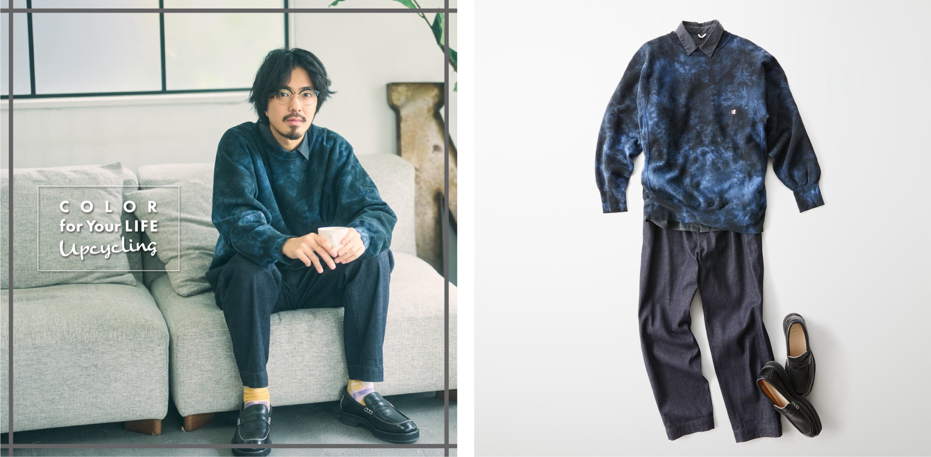 今回「Me & THE EARTH」のスペシャルコンテンツとして、“COLOR For Your LIFE –地球にも優しいサステナブルな服との出会い–”を制作。その第四弾として公開するのは、俳優の若葉竜也さんの‟アップサイクルされたお気に入りの服”と〝これから長く愛用していきたいO0uの服”を組み合わせたコーディネイト。