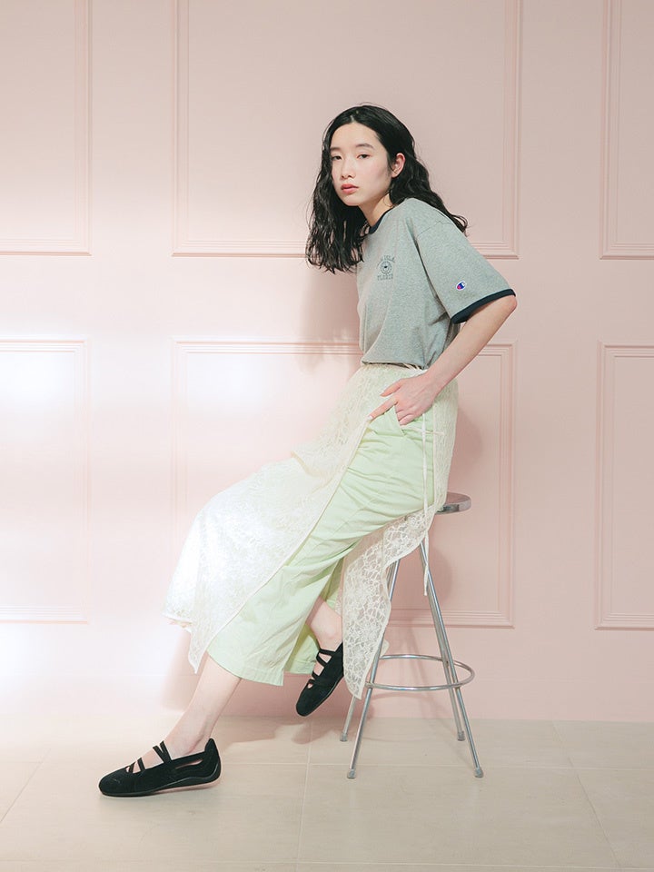 バレエシューズの軽やかさと、モータースポーツ由来の機能美を掛け合わせたデザイン。