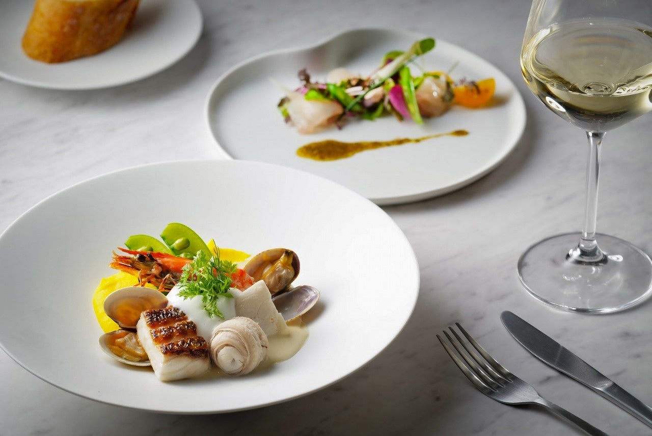 レストラン「Restaurant Cathedréclat」は、「新たな異文化が交わるガストロノミー」をサービスコンセプトに、長崎の伝統的な文化である和・華・蘭の要素を取り入れつつ“新しさ”を感じる、異文化が交差する食体験を提供します。シグネチャーコース「Blanche(ブランシュ)」では、長崎の旬の魚介をはじめ、長崎和牛のパイ包焼きや長崎で〆に好んで食べられるおにぎりを使ったお茶漬けなど、長崎の食文化と異文化の交わりを感じる全6品をご用意いたします。