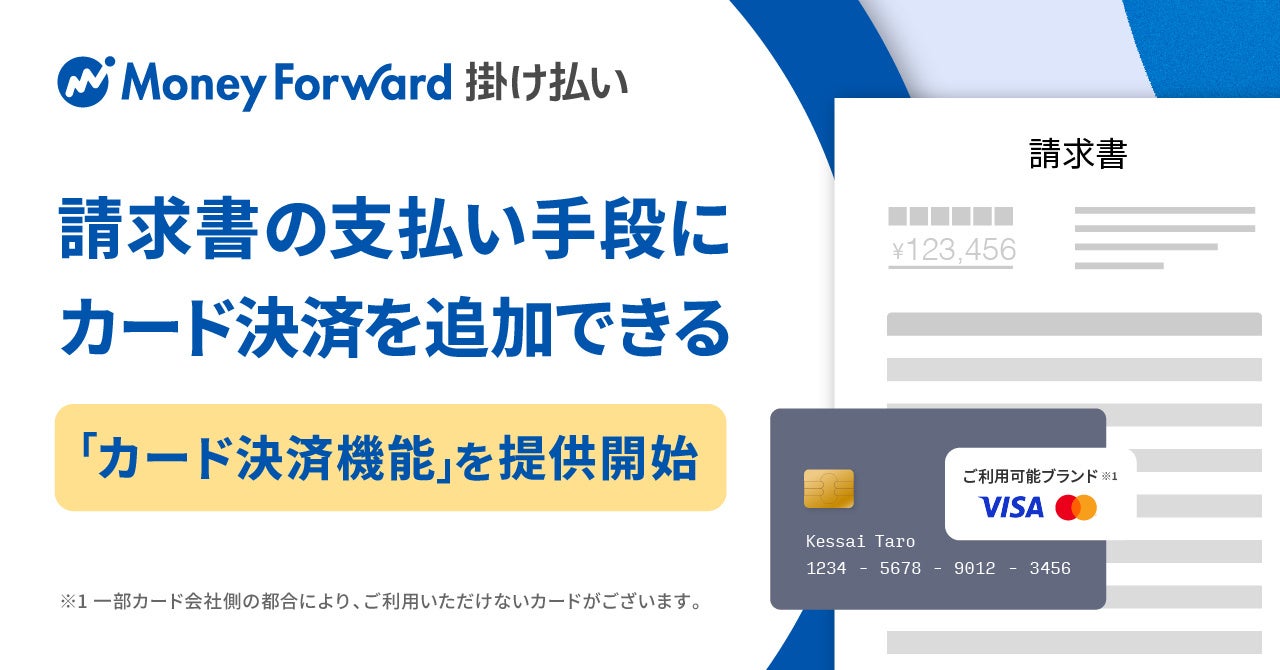 株式会社マネーフォワードは、企業間後払い決済・請求業務を一括代行する『マネーフォワード 掛け払い※1』において、発行した請求書の支払い手段にカード決済を追加できる「カード決済機能」の提供を開始します。
