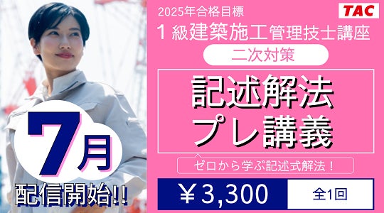 【TAC1級建築施工管理技士】二次対策 記述解法プレ講義 申込開始!