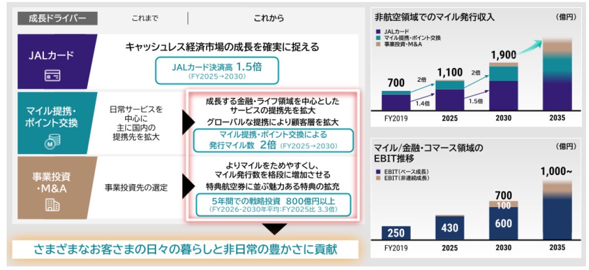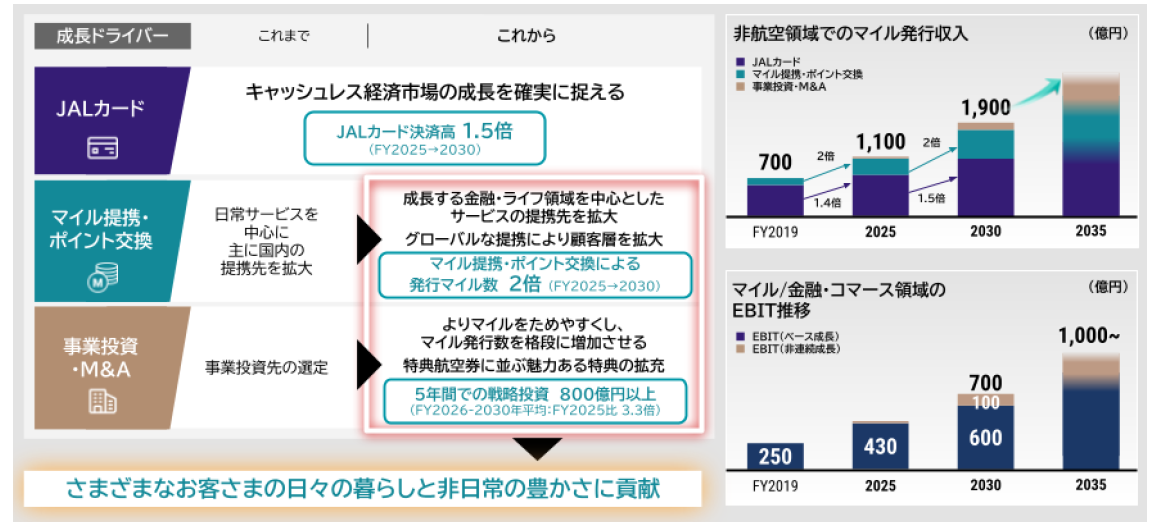 2030年度のマイル/金融・コマース領域のEBITは、2025年度対比1.6倍となる700億円を目指してまいります。この飛躍的な成長を実現するため、2026年度からの5年間で800億円以上の戦略投資を実施します。
