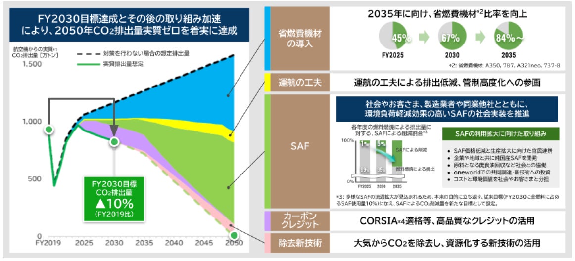 2050年のCO2排出量実質ゼロに向け、2030年度の目標であるCO2排出量10%削減(2019年度対比)を着実に達成します。国産SAFの生産拡大や価格低廉化に向けた官民連携を強化し、持続可能な航空の未来に向けて真摯に取り組んでまいります。