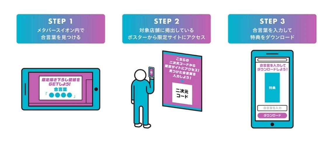 またこれまで課題であったメタバースからの店舗送客の実現に向けた新たな取り組みを実施。「メタバースイオン」の来場者が実際に店舗に行くことで、Z世代に人気のVTuberの限定描き下ろし壁紙を受け取ることができる施策を実施します。
