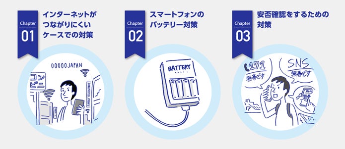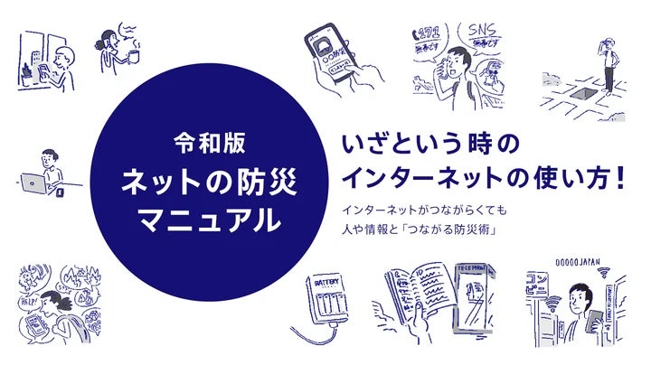 本マニュアルは、防災やインターネット分野の専門家による監修のもと、被災場所やインターネット接続状況に関係なく “人と情報とつながる備蓄”術をまとめたものです。パソコンやスマホからの閲覧だけでなく、PDF形式でダウンロードも可能です。印刷して手元に置いておくことで、インターネットがつながらない環境でも参照できるようにしています。