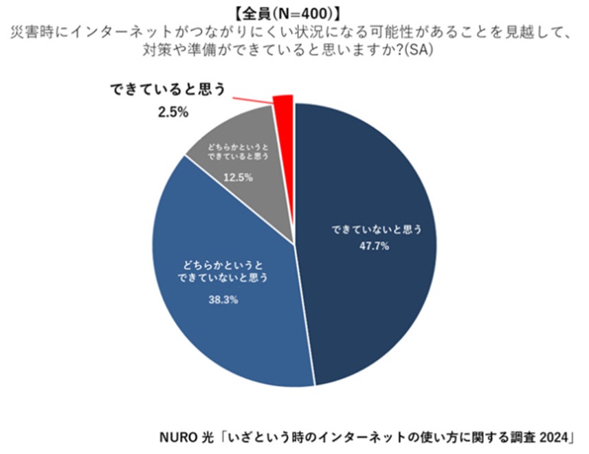 人々の災害に対する警戒意識が高まっていることが明らかになった一方で、災害時にインターネットが接続しなかった状況に備え、実際に対策ができているという回答はわずか2.5%に留まりました。