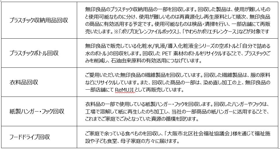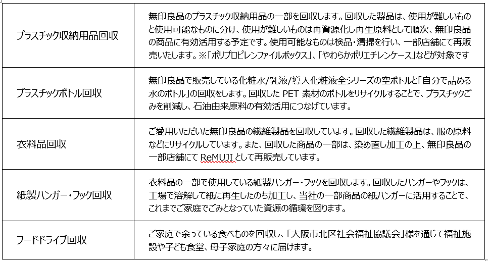リサイクル・リユースの推進「MUJI CYCLE」 回収ステーションの設置