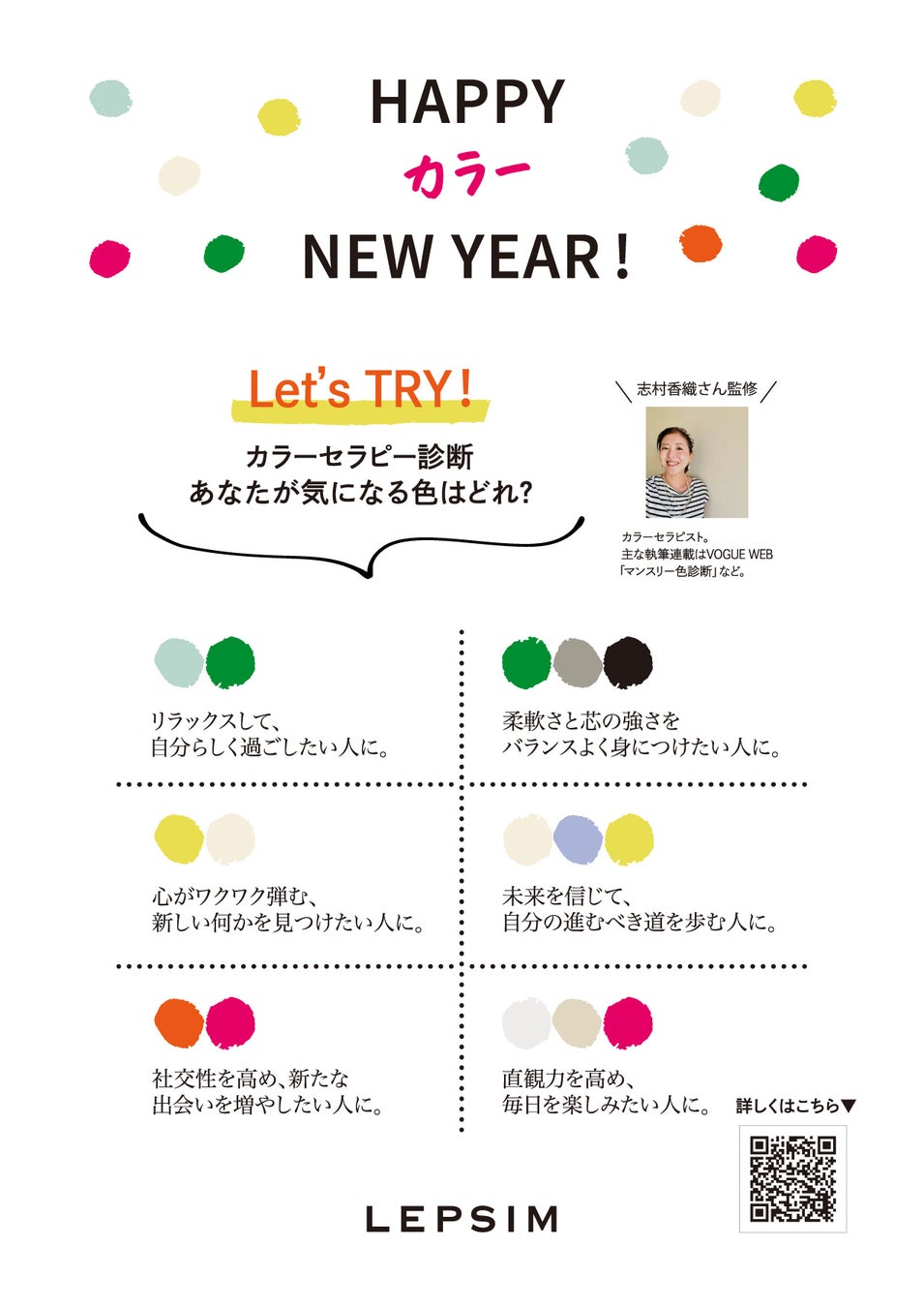 HAPPY カラー NEW YEAR!色の力で運気アップ⁉LEPSIMがカラーセラピー小物を12月20日(月)に発売