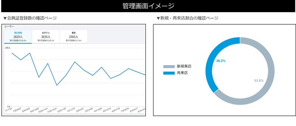 管理画面では会員証を登録した数や集客状況を確認することができます。具体的な改善策と来店促進の施策を明確にし、今後の店舗運営に活かすことができます。