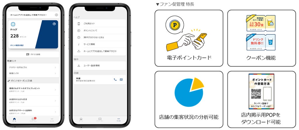 ディップ株式会社(以下「当社」)は、従来のGoogleマップ検索エンジン最適化サービス「集客コボット for MEO」の付帯機能として「ファン促進管理機能」(以下「ファン促進管理」)の提供を開始いたしました。「集客コボット for MEO」と「ファン促進管理」を併せて利用することで、店舗の売上最大化を効率的に行う事ができるようになります。