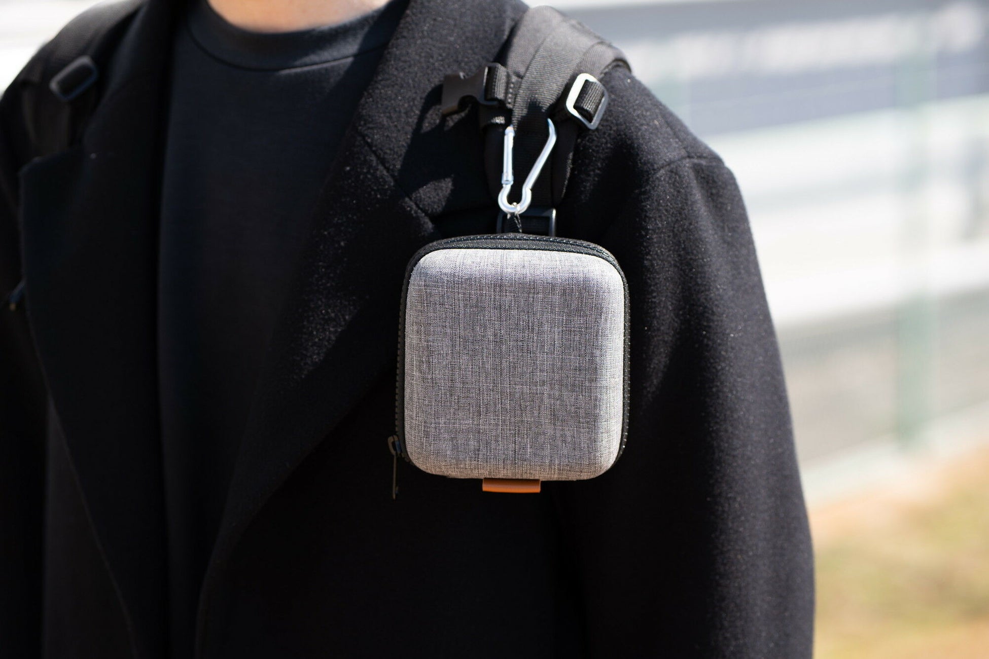 カラビナ付きでリュックやベルトなどに装着可能。持ち運びに便利です。