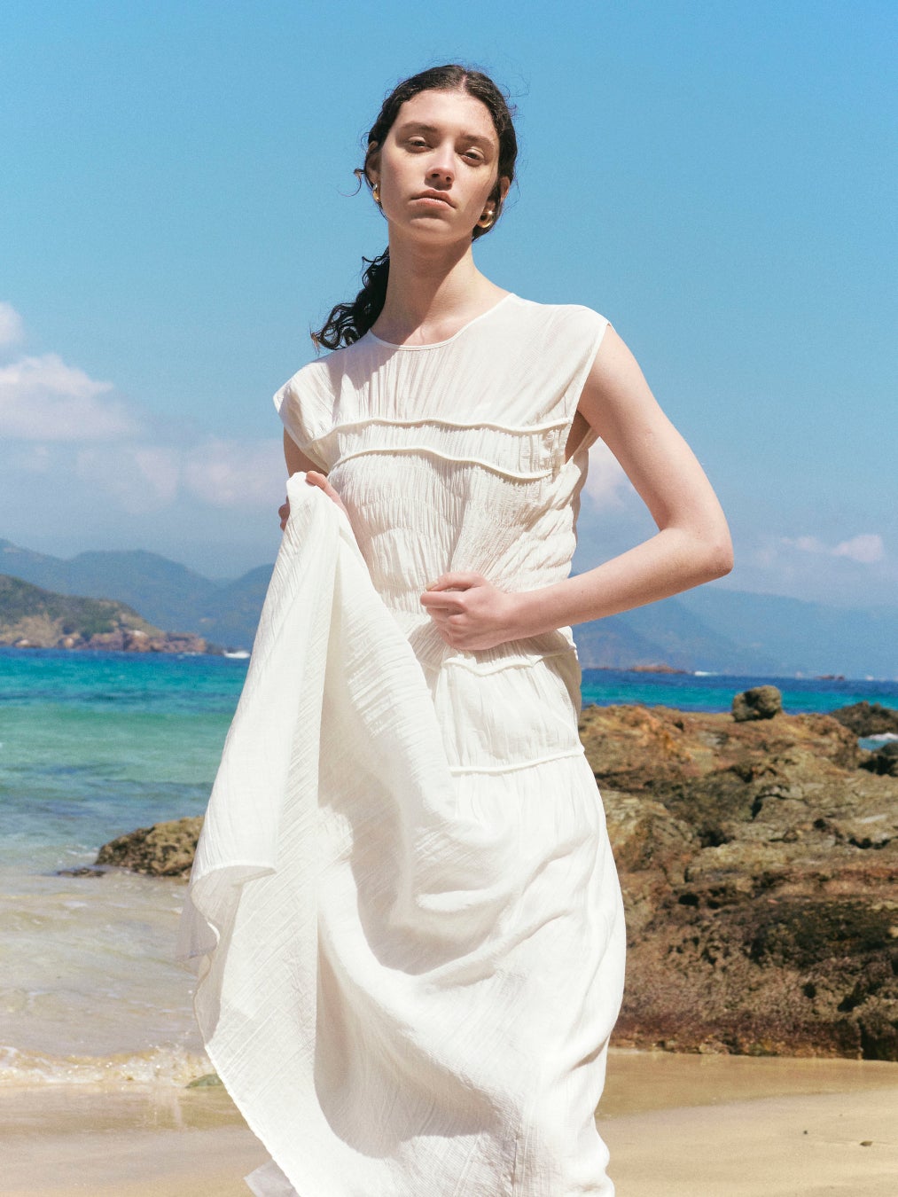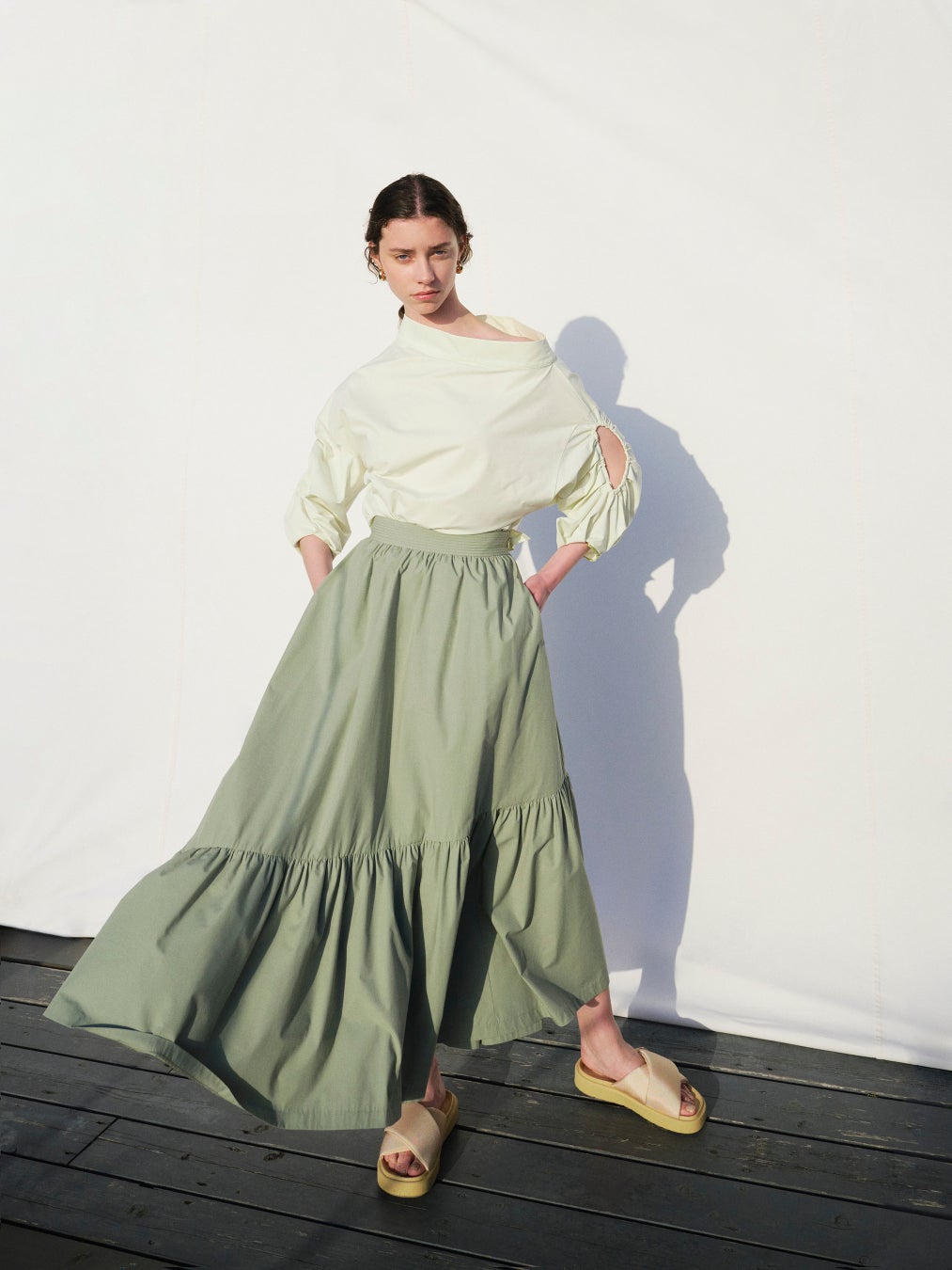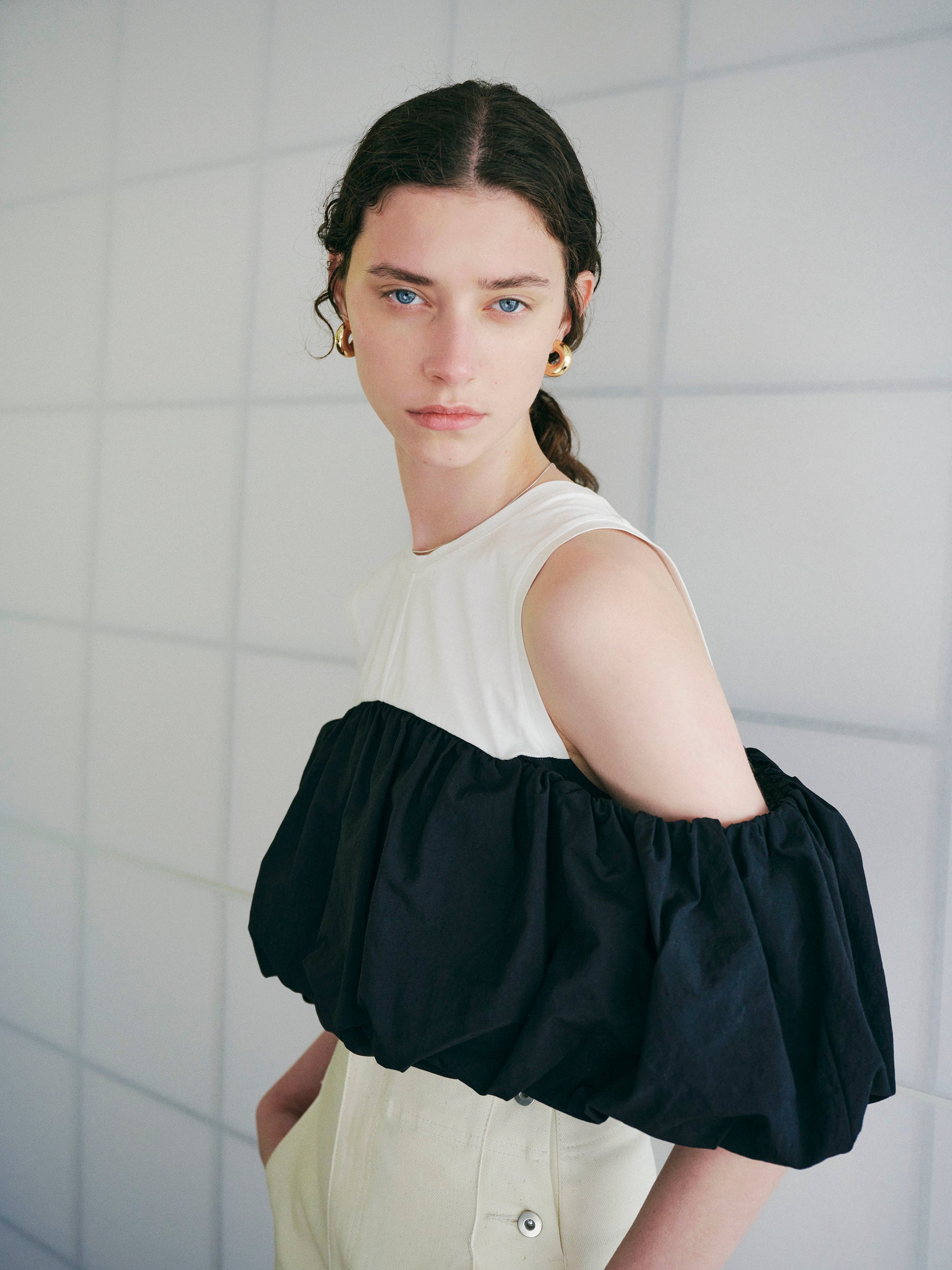 emmi のクリアモードなエッセンスを効かせて身に着けることで、気分も涼やかに過ごせる