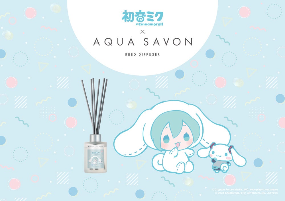 今年で15周年を迎える大人気フレグランスブランド『アクア シャボン』から「初音ミク×シナモロール」とコラボレーションしたドン・キホーテ限定デザインのリードディフューザーが登場!