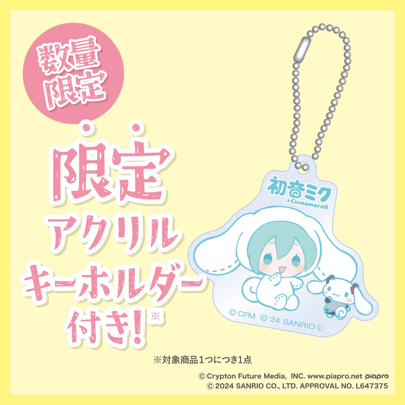 「初音ミク」が「シナモロール」の着ぐるみを、「シナモロール」が「初音ミク」の洋服を着た可愛いイラストが、アクア シャボンの世界観に合わせて可愛くやさしいタッチで描かれた数量限定デザイン。