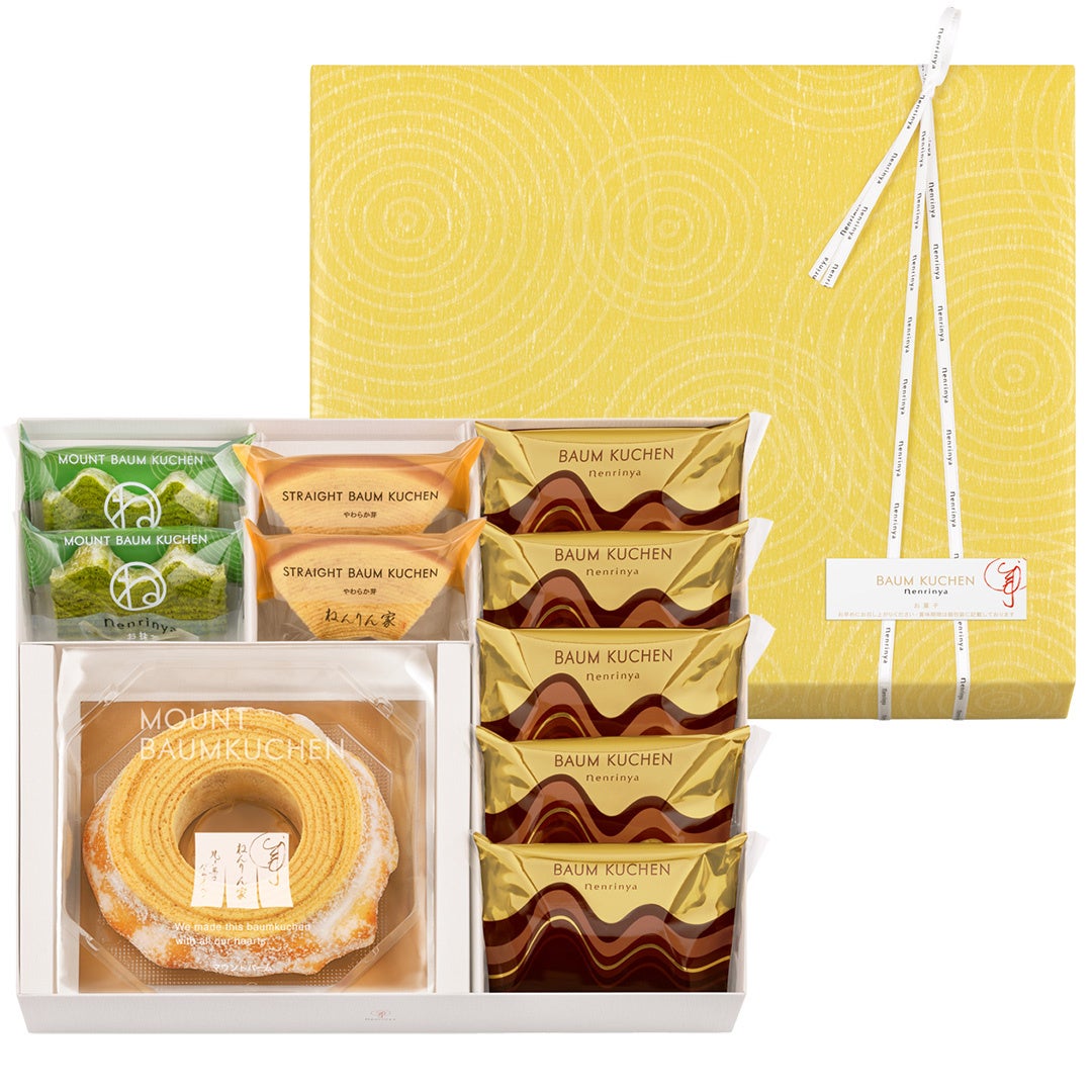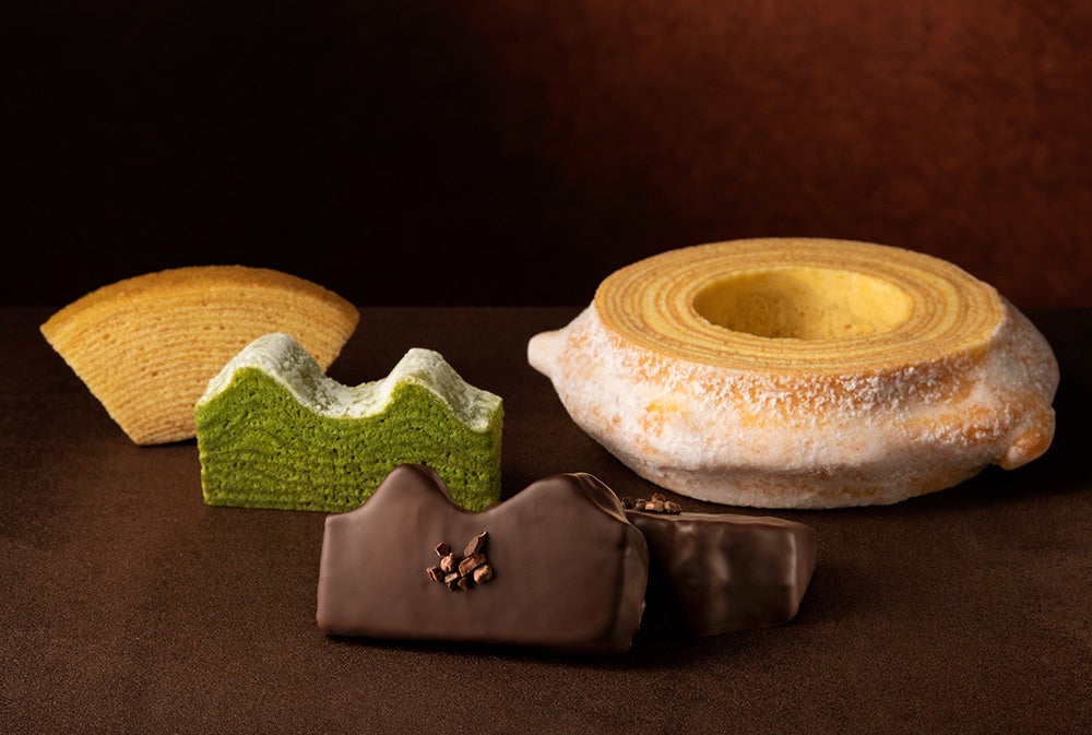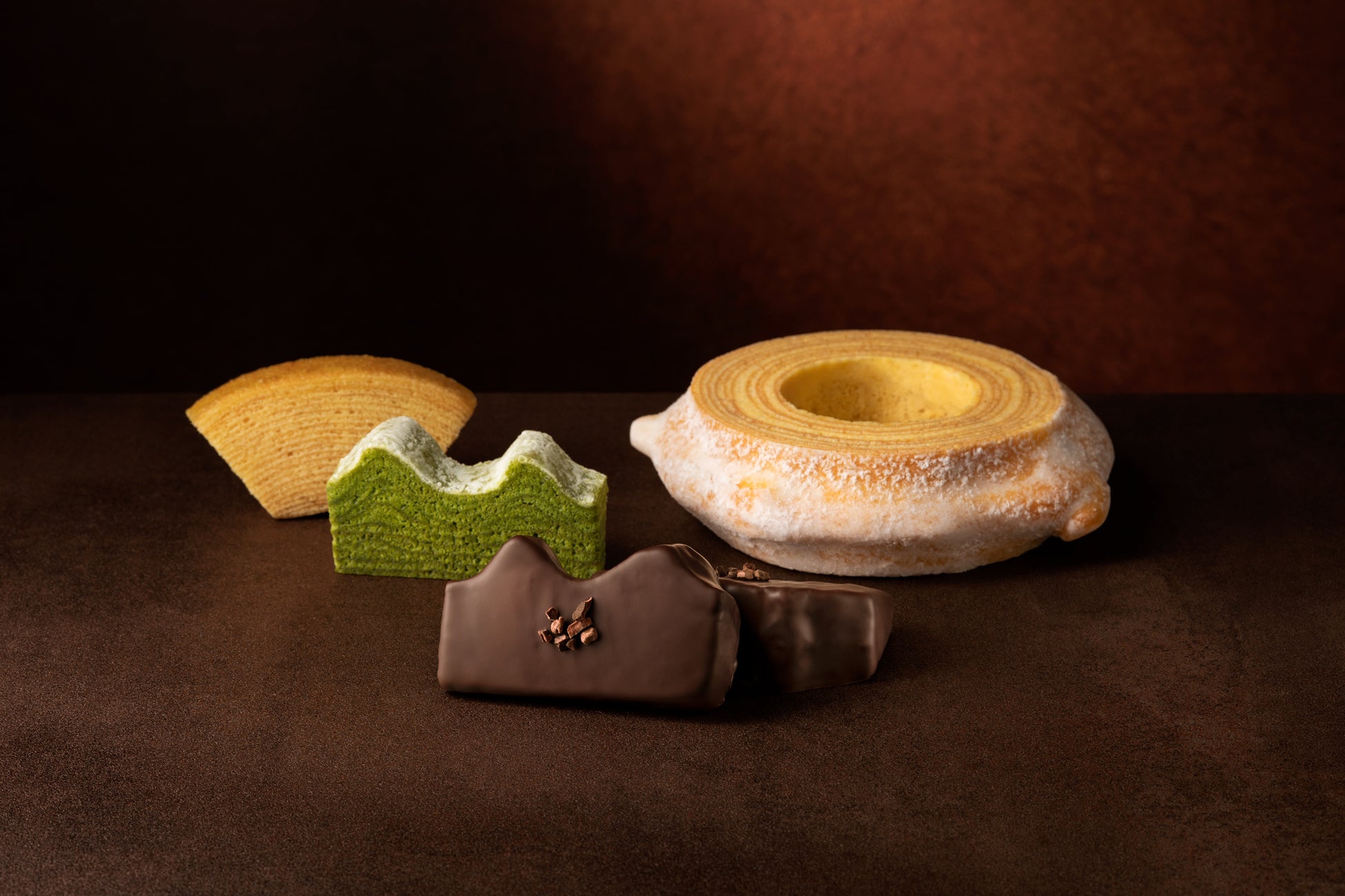 内容は、「ねんりん家」の世界をたっぷりと満喫する4味の詰め合わせ。濃厚バター風味の代表作『マウントバーム しっかり芽』は、見た目も華やかにホールサイズでご用意しました。また、たまご風味でふっくらジューシーに焼き上げた『ストレートバーム やわらか芽』、芳醇宇治抹茶が香る『マウントバーム お抹茶』は、上品で食べやすいひとくちサイズで入ります。注目は、新作の『炭火ショコラオール』。ひとくちサイズに切り分けた『マウントバーム ブラウニー』に、深いコクの“炭火ショコラ”をとろりと流しかけた、中も外もショコラづくしな一品です。