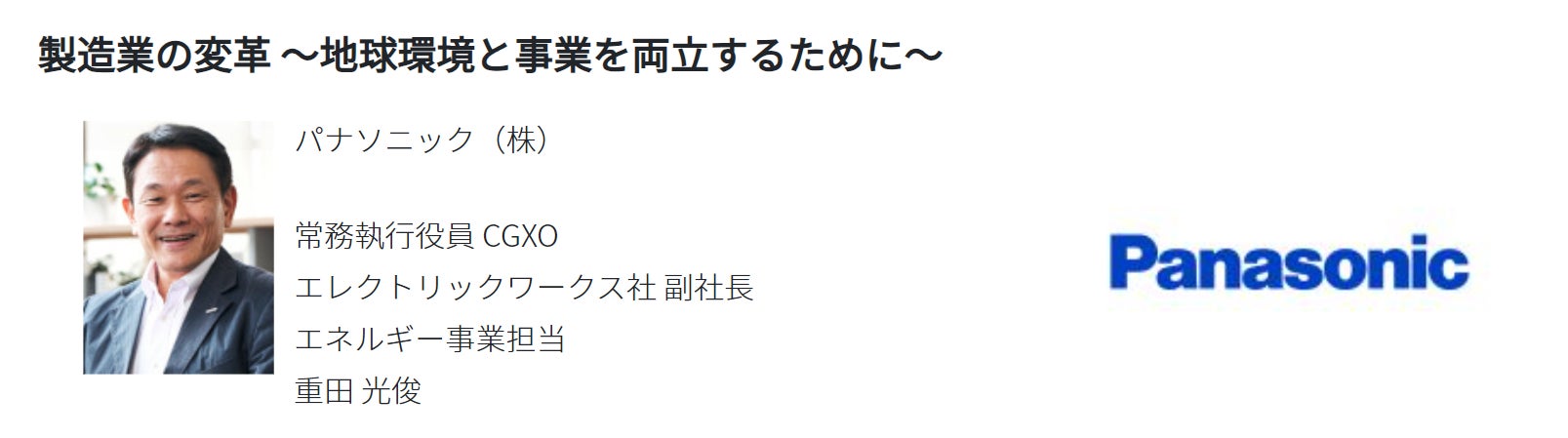 Factory Innovation Week [秋] カンファレンス内では、カーボンニュートラル実現を目指すパナソニック(株)が登壇し、製造業のサステナビリティ推進“SX”について語る!