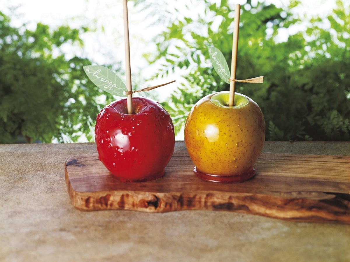 青森りんごを扱うスィーツ専門店。産地直送のりんごの味を生かした、パリッと甘いりんご飴 (実演)