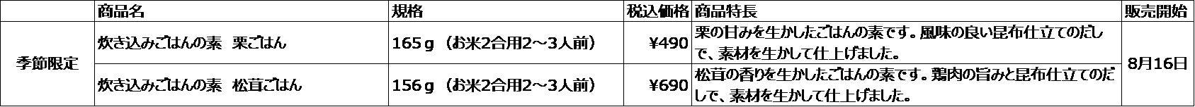 8/16(水) 無印良品 炊き込みごはんの素 栗ごはん、松茸ごはん 季節限定発売のお知らせ