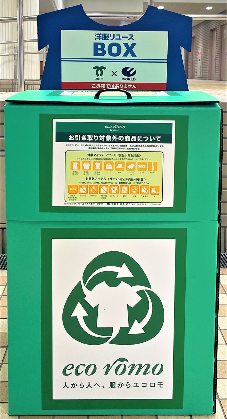 ワールド エコロモ キャンペーン×神戸市SDGs 3月28日(金)まで神戸市営地下鉄13駅に回収ボックスを設置 ー現時点で11,103点の衣料品を回収ー