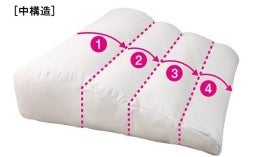 頭部から肩周りまで各部位に合わせた高さ設定をすることで自然な寝姿勢を保ちます。また横方向に仕切りのある4レーン構造で、中わたが上下に逃げることなく左右にだけ動くので、各部位に適した高さをキープ。寝返りしても寝姿勢を崩すことなくサポートします。