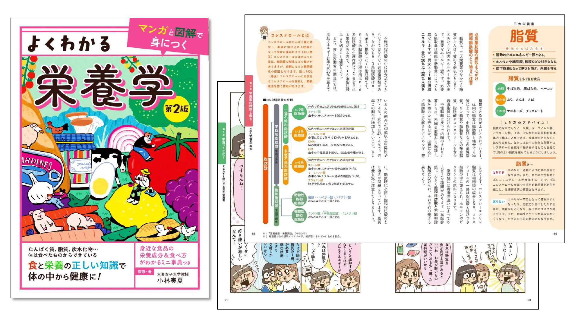 『よくわかる栄養学 第2版』の特長は、専門的な内容をマンガと図解で視覚的に解説している点です。