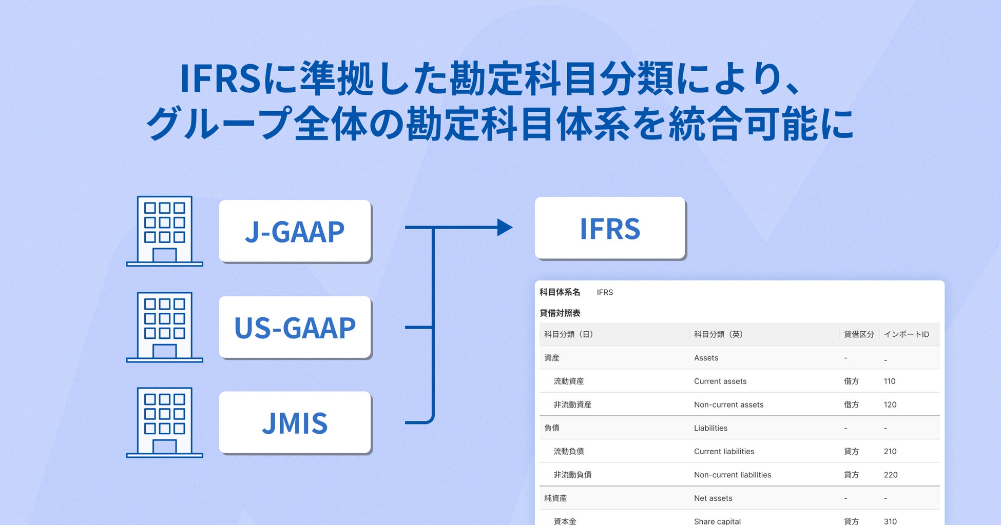 1. IFRSに準拠した勘定科目分類により、グループ全体の勘定科目体系を統合可能