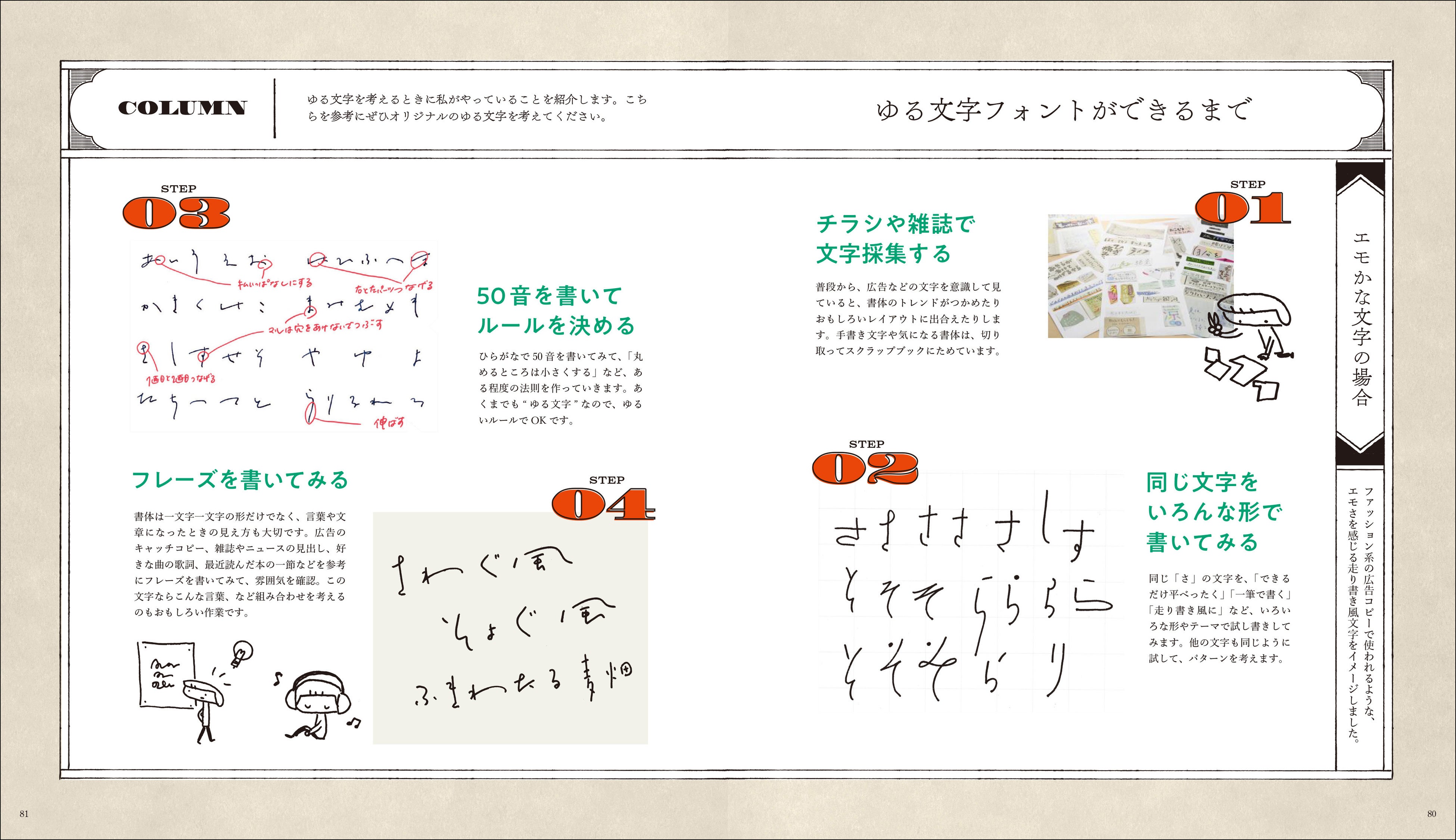 コラムでは創作フォントの発想方法や、色の組み合わせ方のコツなども紹介。