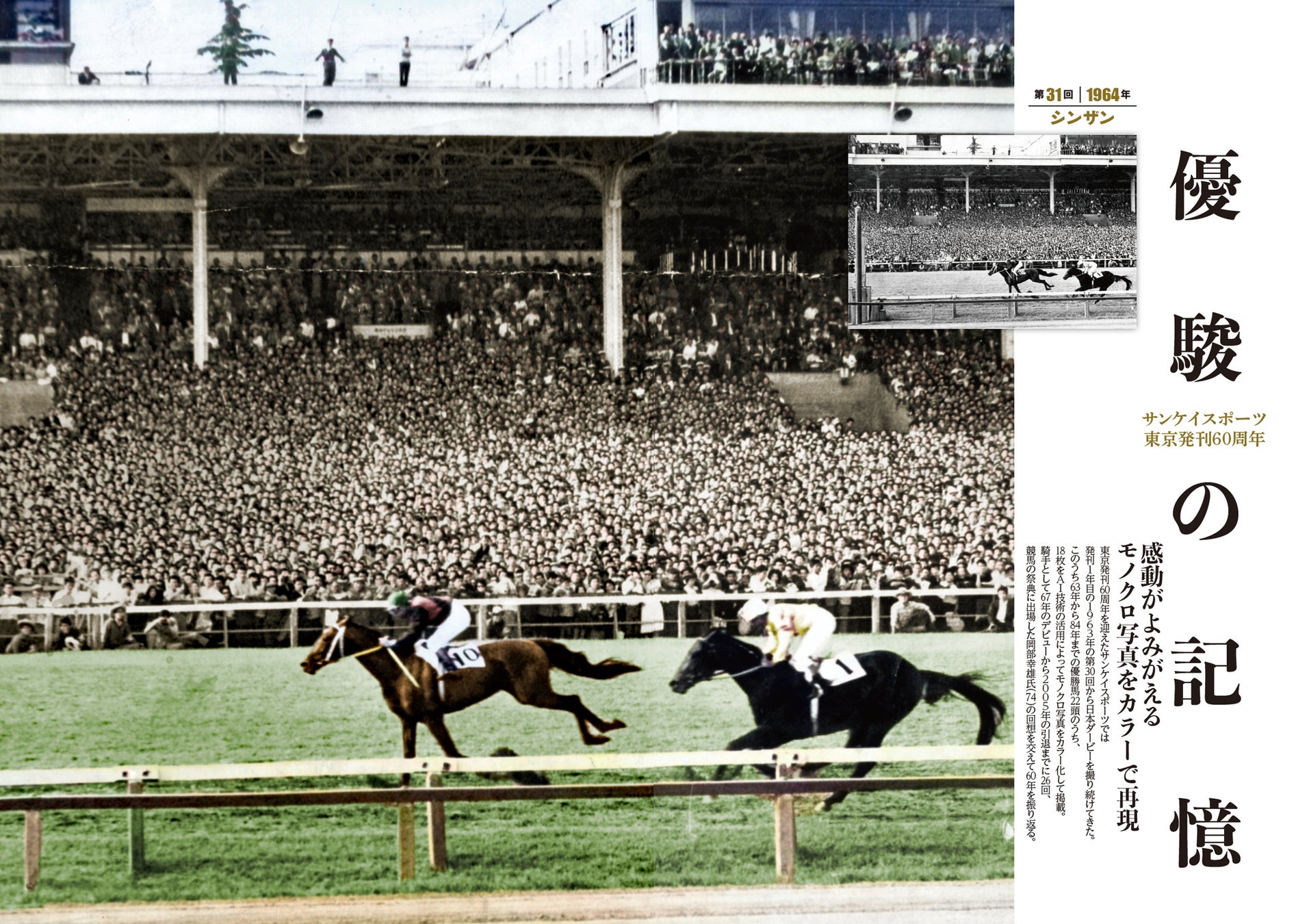 東京発刊60周年を迎えたサンケイスポーツ(産経新聞社発行)は、発刊1年目の1963年の第30回から日本ダービーを撮り続けてきました。このうち、1963年から1984年までの優勝馬22頭のうち18枚は、AI技術を活用した写真編集アプリでモノクロからカラーに初めて再現しました。再現写真を含めて週刊ギャロップ(6月4日号)で、10ページに渡って特集しています。